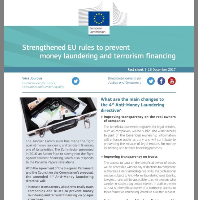 Věra Jourová, the European Commissioner for @EU_Justice, @EU_Consumer and Gender Equality has yesterday informed the public that two committees (LIBE and ECON) have agreed with the amendments proposed to the Fourth EU Anti-money Laundering Directive (AMLD4).
