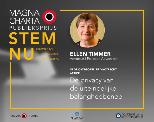 De Academie voor de Rechtspraktijk was zo vriendelijk mijn twee artikelen voor WPNR over de privacy van de uiteindelijke belanghebbende te nomineren voor de Magna Charta Publieksprijs in de rubriek privacyrecht. Stemmen op de publieksprijs privacyrecht van Magna Charta kan vanaf vandaag via deze pagina.