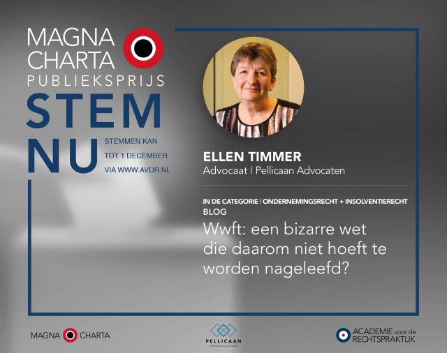 Mijn blog Wwft: een bizarre wet die daarom niet hoeft te worden nageleefd? werd eveneens genomineerd voor de Magna Charta Publieksprijs, te weten in de rubriek ondernemingsrecht / insolventierecht.