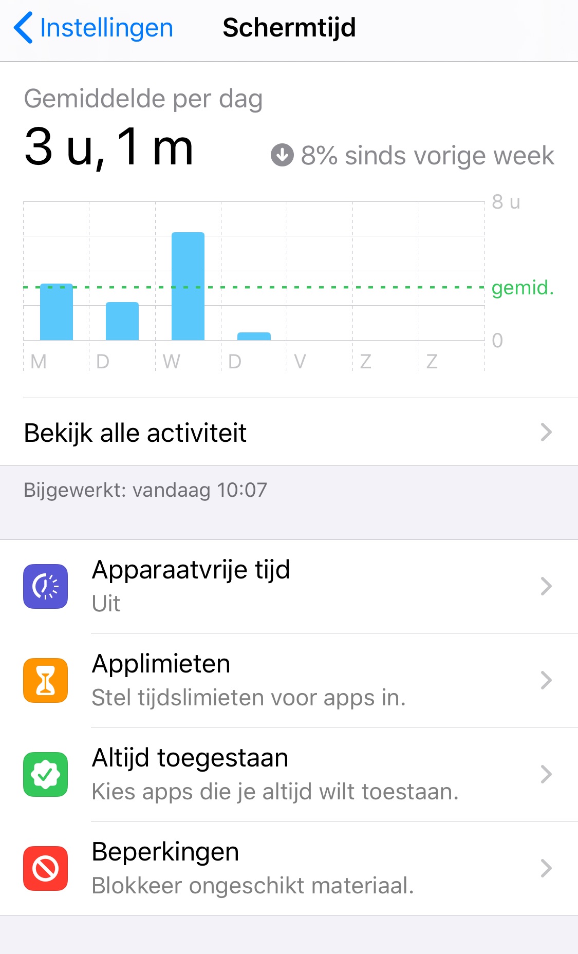 Inmiddels hebben de siliconenjongens het menu weer aangepast. In de laatste update van iOS zag ik dat wat onder ‘Schermtijd‘ de naam ‘Materiaal en privacy‘ had, nu weer ‘Beperkingen‘ heet. Daarmee is niet voldaan aan mijn wens om Beperkingen los te koppelen van dat maffe ‘Schermtijd‘.