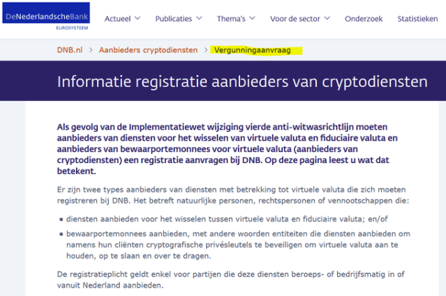 - Bericht DNB van 3 september 2019, Aanbieders van cryptodiensten dienen zich voor te bereiden op toezicht DNB.