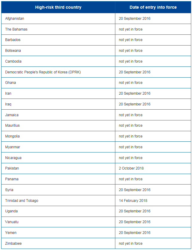 On 7 May the European Commission announced it has revised the list of high-risk third countries with strategic deficiencies in their regime regarding anti-money laundering (AML) and countering terrorist financing (CTF).