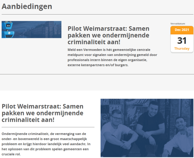 Dit maakt de lezer niet wijzer: is dit een onderneming? Zo ja, wat bieden ze aan? Op de pagina oplossingen staat dat ondermijning kan worden gemeld via een app. Dus er worden interessante gegevens verzameld als alles functioneert.