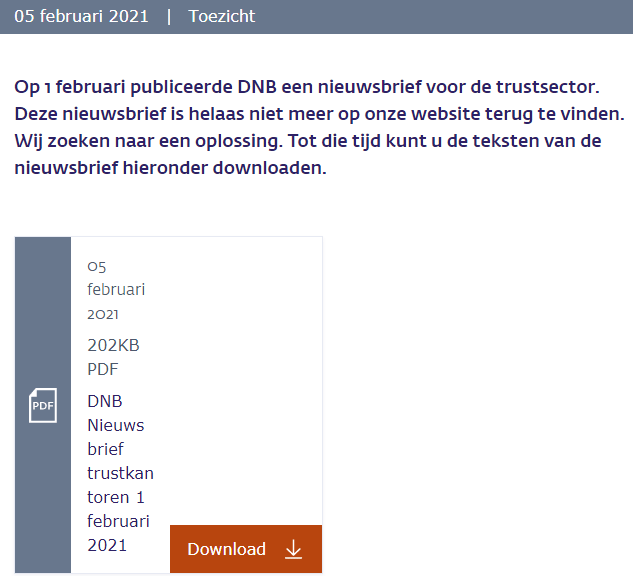 Op 1 februari jl. kwam een nieuwsbrief van DNB voor trustkantoren uit met de volgende onderwerpen, waarbij ik enige korte kanttekeningen plaats: