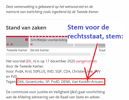 - Alleen D66, GroenLinks en PvdA doorstaan toets rechtsstatelijkheid, Trouw 10 maart 2021.