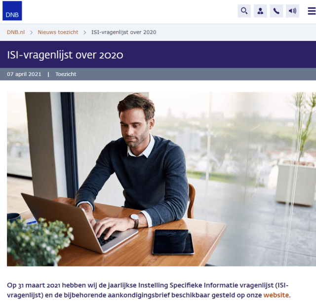 Degenen die naar het bericht over de ISI-vragenlijst 2020 doorklikken komen op de DNB pagina terecht, waaraan niet is te zien dat dit een item is dat voor trustkantoren bestemd is: