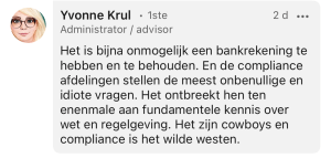 Over andere Wwft-plichtigen hoor ik nog niet zoveel klachten, dat zal waarschijnlijk komen omdat zij nog minder achtervolgd worden met draconische straffen. Dat zal vanzelf veranderen als de bankenmethode ook bij hen wordt toegepast.