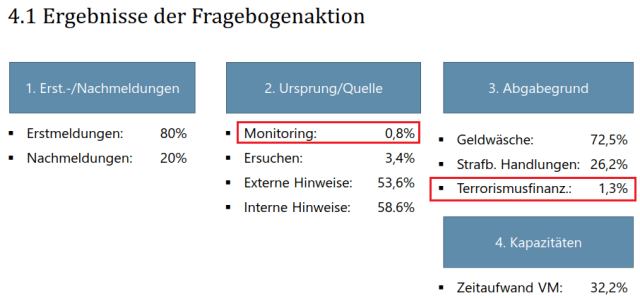 Meer over mystery shopping in het BaFin journaal van december jl. (er is ook een html pagina of bekijk de pdf). Ook boeiend: BaFin erkent dat monitoring weinig oplevert (Quelle 0,8%) en terrorismefinanciering niet kan worden opgespoord (Abgabegrund 1,3%), zie 5e presentatie: