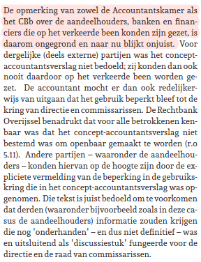 Op 9 februari jl. deed de Rechtbank Overijssel uitspraak in een zaak over een concept-accountantsverslag. In die uitspraak oordeelt de Rechtbank – in afwijking van het standpunt van de Accountantskamer – dat het concept-accountantsverslag niet bestemd was voor de aandeelhouders van de rechtspersoon waarop het concept betrekking had.