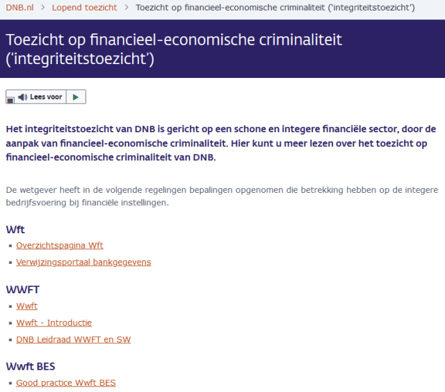Het is even verrassend en merkwaardig als de mededeling van DNB dat ‘toezicht’ gehouden wordt op ‘financieel-economische criminaliteit’.