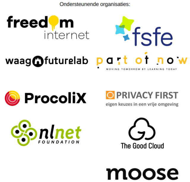 De petitie wordt gesteund door organisaties als Freedom Internet (artikel), Privacy First (artikel) en Waag: