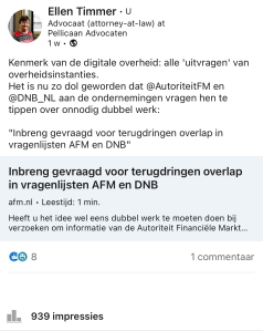 Mijn bericht op LinkedIn over de consultatie bereikte na een week al meer dan 900 impressies: