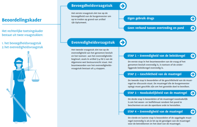 In het beoordelingskader wordt terecht geconstateerd dat er verband moet zijn tussen criminaliteit en het pand (zie pagina 5, ‘Verband tussen overtreding en pand‘). De verwijzing naar rechtspraak is wel nuttig.