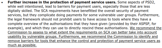Er moeten meer maatregelen tegen fraude worden genomen, nu criminelen SCA omzeilen. De tekst lijkt zowel betrekking te hebben op fraude ten nadele van de klanten van betaaldienstverleners, als op criminele klanten (die geweerd moeten worden):