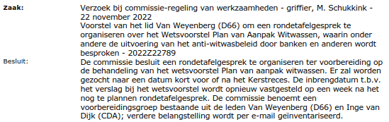 Besluitenlijst commissie Financiën 24 november 2022