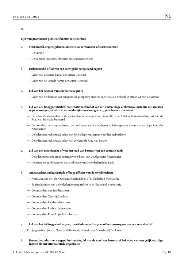In november jl. heeft Europa een overzicht van prominente publieke functies uitgebracht, dat overzicht is hier (pdf) te vinden. Op pagina’s 75-77 is de Nederlandse lijst te vinden (bekijk de door mij er uit gehaalde pdf-pagina’s).