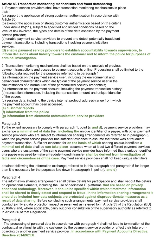 Earlier I wrote on data sharing in PSR: Sharing of transaction monitoring information by PSPs in the PSR proposal | financial data access and payments package EU.