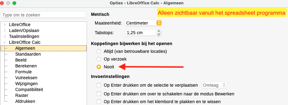 en het uitzetten van het bijwerken van koppelingen, onderstaand als voorbeeld in het spreadsheetprogramma, maar het geldt ook voor tekstverwerking: