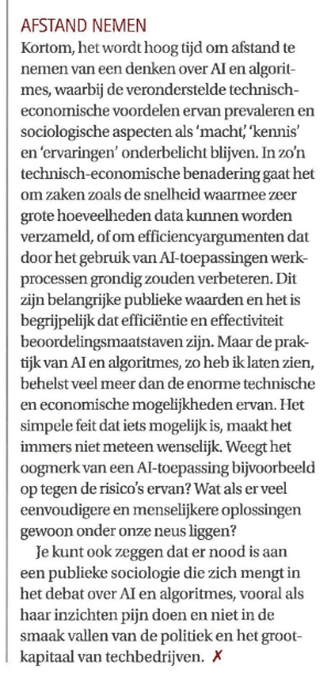 Marc Schuilenburg kondigde zijn essay voor Sociologie Magazine ‘Het ‘publiek maken’ van AI en algoritmes‘ aan dat daar ook kan worden gedownload.