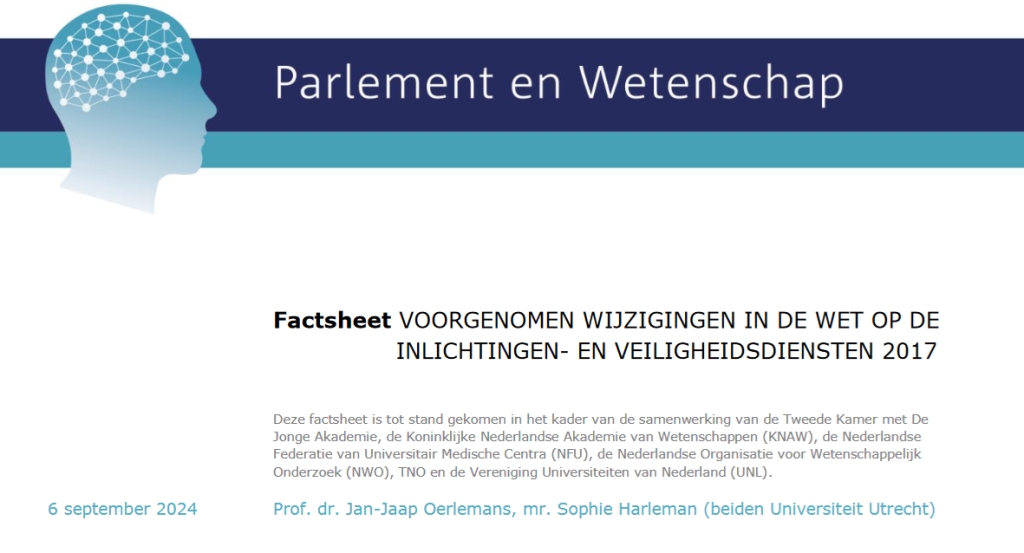 Over de plannen om de Wet op de inlichtingen- en veiligheidsdiensten 2017 te wijzigen, schreven Jan-Jaap Oerlemans, bijzonder hoogleraar ‘Inlichtingen en Recht’ en Sophie Harleman een factsheet: