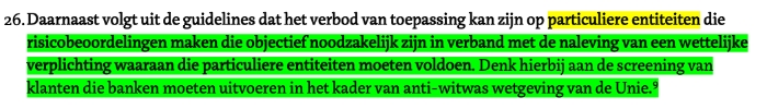Ook de geprivatiseerde criminaliteitsbestrijding (bestrijding van witwassen en terrorismefinanciering, naleving sanctieregelgeving) wordt genoemd. Op pagina 9 staat: